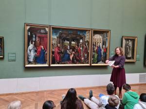 Am Dienstag den 2. Dezember sind wir mit dem Zug von Prien nach München gefahren. Vom Bahnhof gingen wir zu Fuß zur Alten Pinakothek. Dort bekamen wir eine tolle Führung zu den Weihnachtsbildern, die da ausgestellt sind. Die Gemälde sind sehr alt, wertvoll und wirklich interessant. Sie wurden im Mittelalter gemalt, damit auch Menschen, die nicht lesen können, die Geschichte von Jesus erfahren.